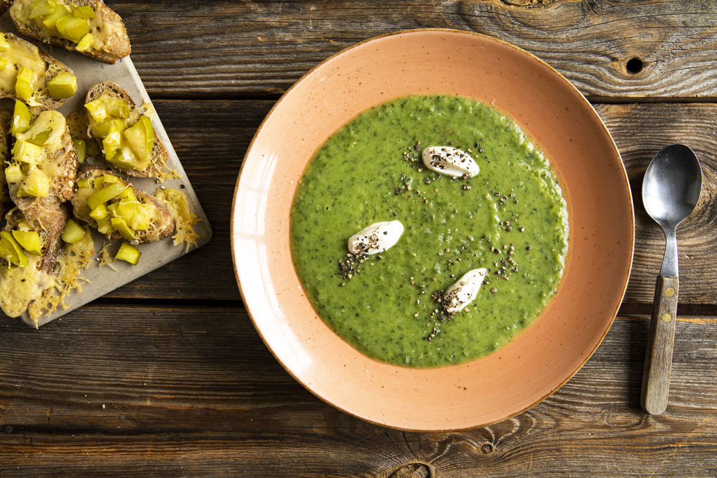 Het is bijna winter! En omdat niemand zin heeft om de hele winter alleen maar stamppot te eten, stoppen we vandaag een van de bekendste Hollandse groenten in een verwarmende soep. Deze soep van prei, aardappel en boerenkool is daarnaast ook heerlijk vullend, zeker als je ‘m combineert met in de knapperig gebakken crostini met geraspte kaas en kruidige appelchutney voor een extra lekkere, winterse maaltijd! Lees het recept voor boerenkoolsoep met prei en crostini met appelchutney en kaas.