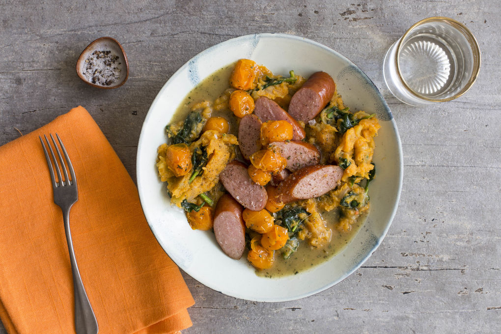 Normaal houden we bij Marley Spoon van borden met zoveel mogelijk kleuren groenten erop. Toch maken we graag een uitzondering voor dit bijna volledig oranje recept van chef Amanda. De combinatie van sappige, geroosterde cherrytomaten geserveerd op een stamppotje van aardappel en wortel is namelijk gewoon top. Zeker als je er dikke plakken Gelderse rookworst met jus op serveert zoals hier! Hier vind je ons recept voor Gelderse rookworst met jus en lichtzoete wortelstamppot.